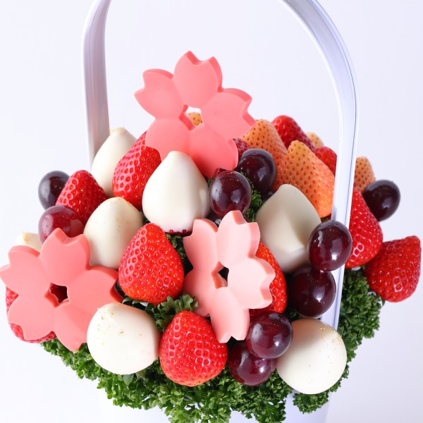 春の空に舞う桜のように、見る人の心を明るく照らす、フルーツとチョコの花束。