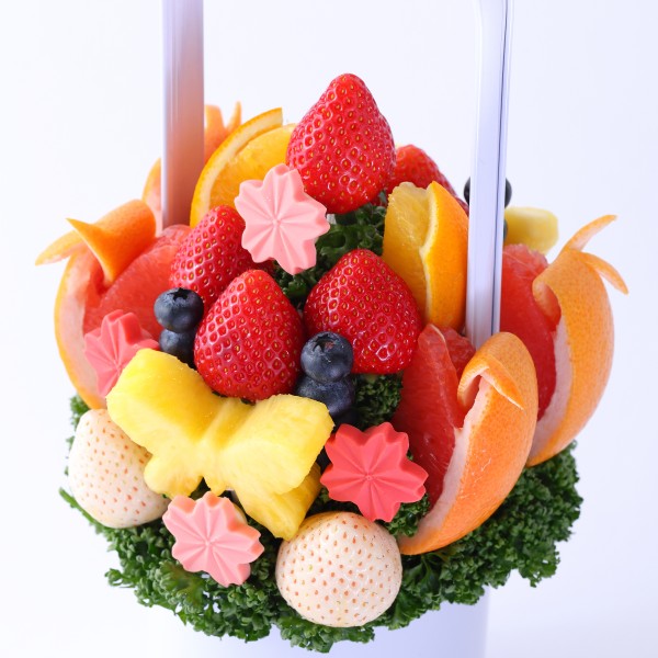 写真はイメージです。フルーツの仕入れ状況や個体のサイズにより、アレンジメントが若干変更になる場合がございますので、あらかじめご了承ください。詳しくはお問い合わせください。