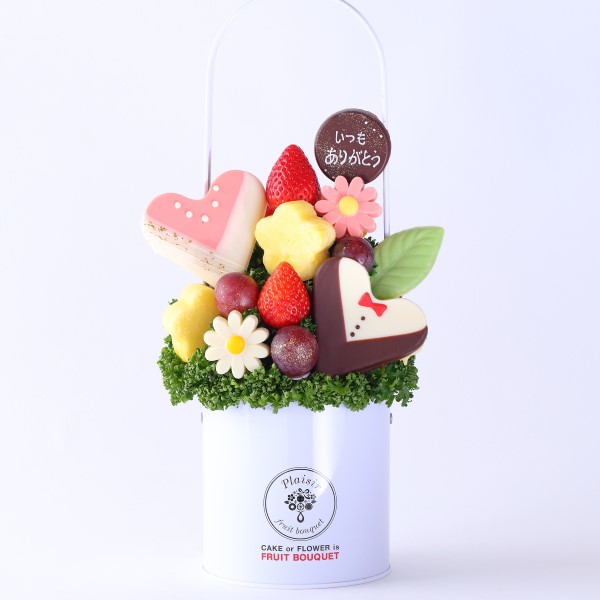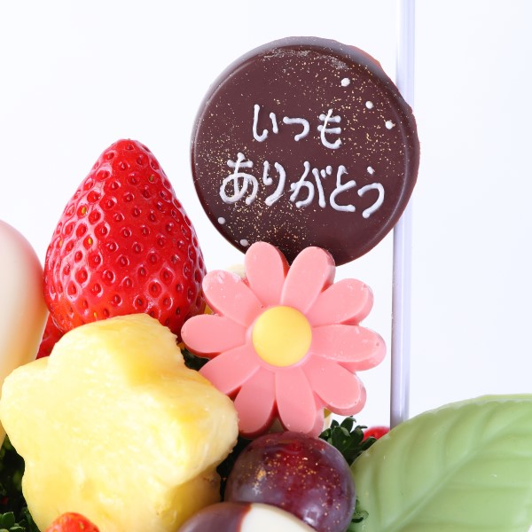 人気の「Mariage(マリアージュ)」のフルーツブーケと「いつもありがとう」チョコレートプレートを一緒にお届けします。