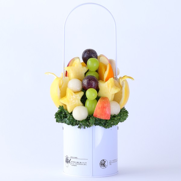 りんごやシャインマスカットなどのブドウ、オレンジなど、旬のフルーツをバランスよくアレンジ。