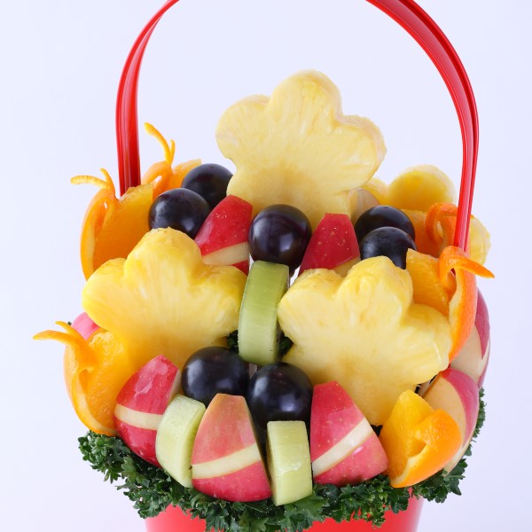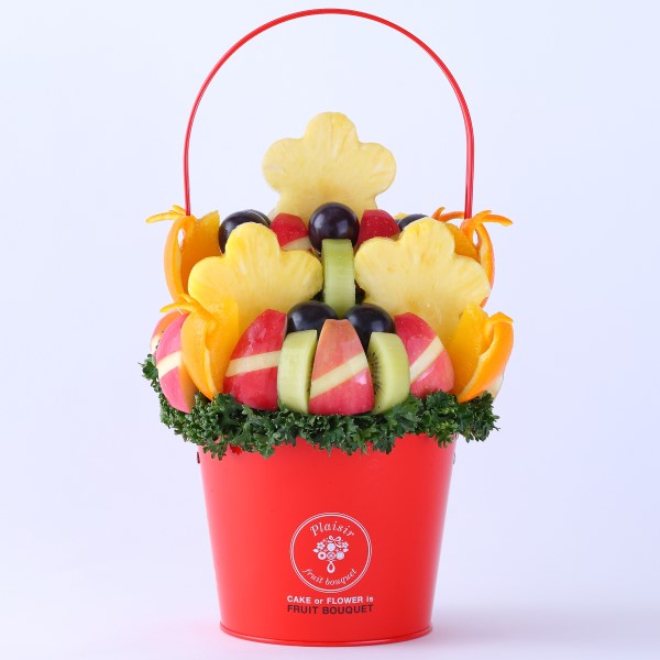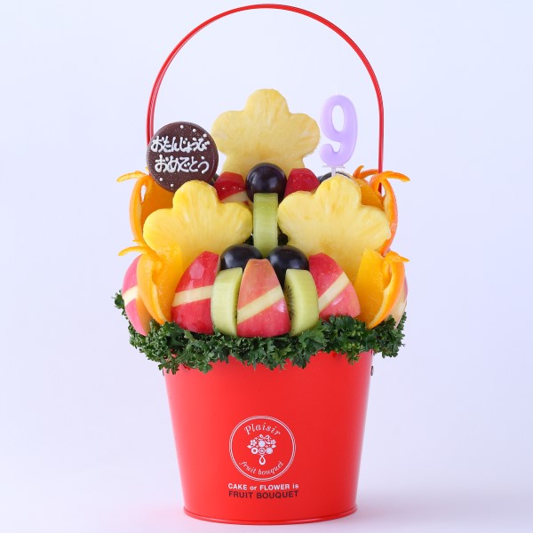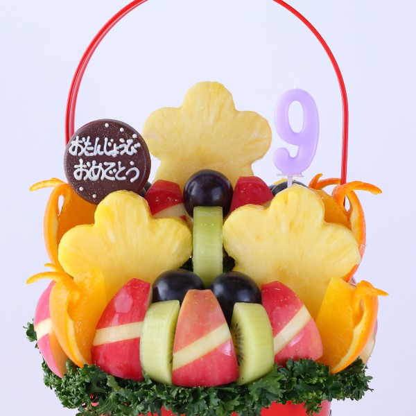 赤・緑・黄・オレンジの色とりどりのフルーツが花束のように広がるビジュアルは、受け取った方の気持ちを一気に明るくしてくれるはず。