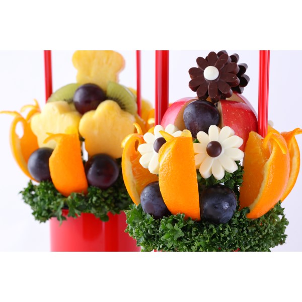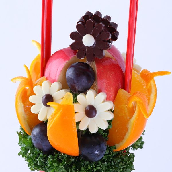 可憐なチョコの花が咲く、小さな幸せのフルーツブーケ。