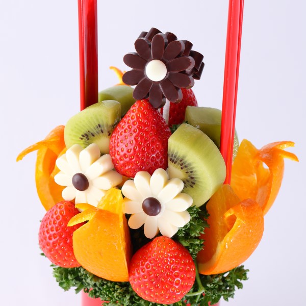 フルーツの瑞々しさとチョコレートの上品な甘さ、どちらも楽しみたい方にぴったりのフルーツブーケ『デイジー』。