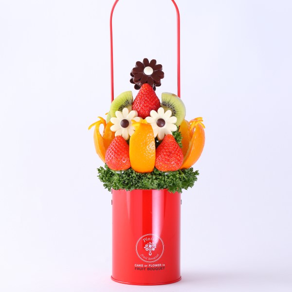 カラフルなフルーツとチョコレートの組み合わせが、誕生日や記念日を華やかに演出。チョコレートプレートを添えれば、さらに特別感のあるプレゼントに。