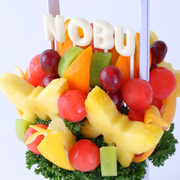 1文字300円で、S・Mサイズのフルーツブーケには5文字程度まで、L・Pサイズのフルーツブーケには7文字程度までお取付けできます。